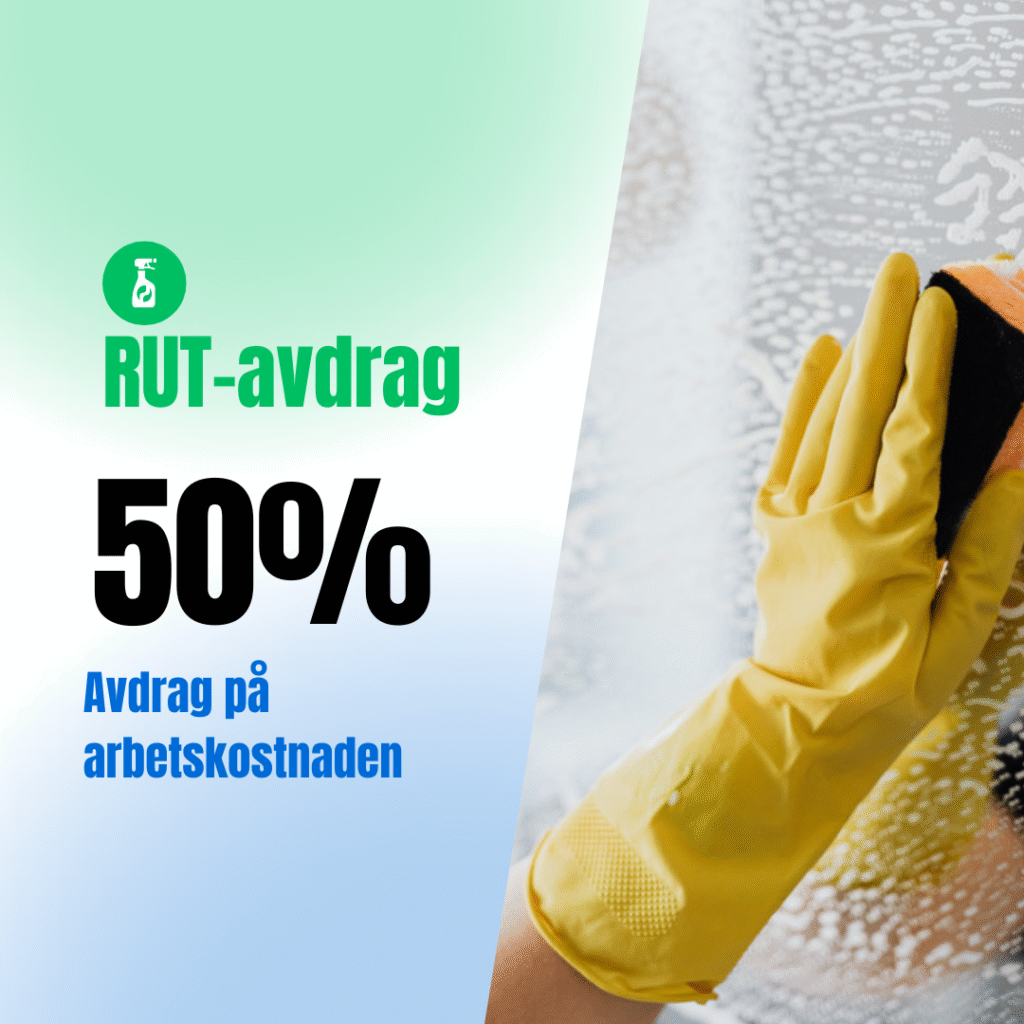 Vår städfirma gör det enkelt att få ett skinande rent hem: 50% RUT-avdrag dras direkt på fakturan. Detta innebär halva arbetskostnaden utan krångel – en smidig lösning för dig. Vi hanterar all administration med Skatteverket, så du slipper vänta på pengar. Maximera din besparing och upplev kvalitetsstädning, mer information om RUT-avdrag finns på Skatteverkets hemsida.